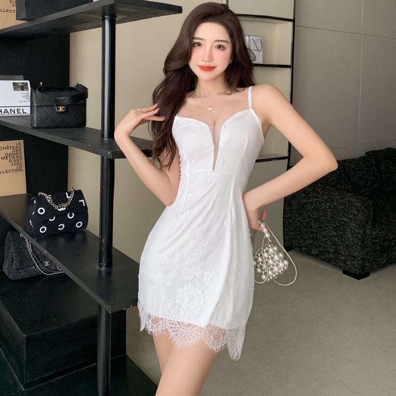 ナイトクラブの女性のナイトクラブの気質セクシーなローカットディープVネックショートパッケージヒップサスペンダースカートレースドレス micat99691119982