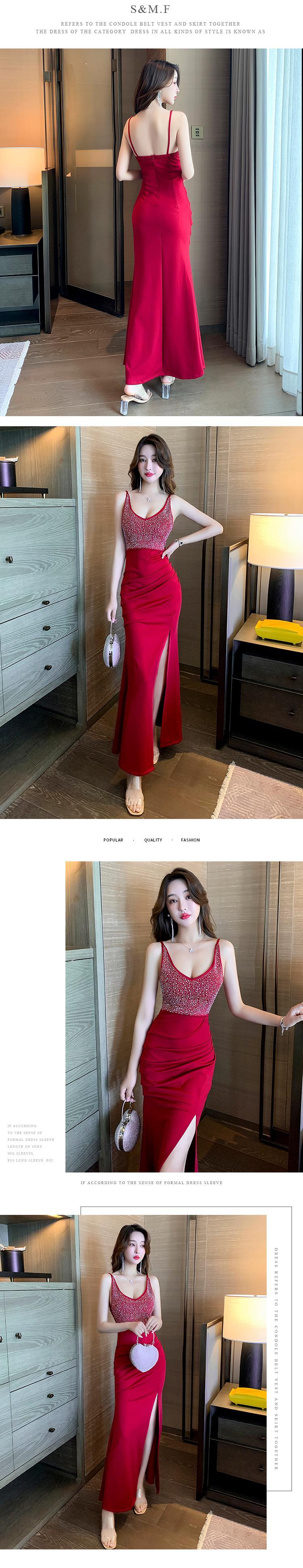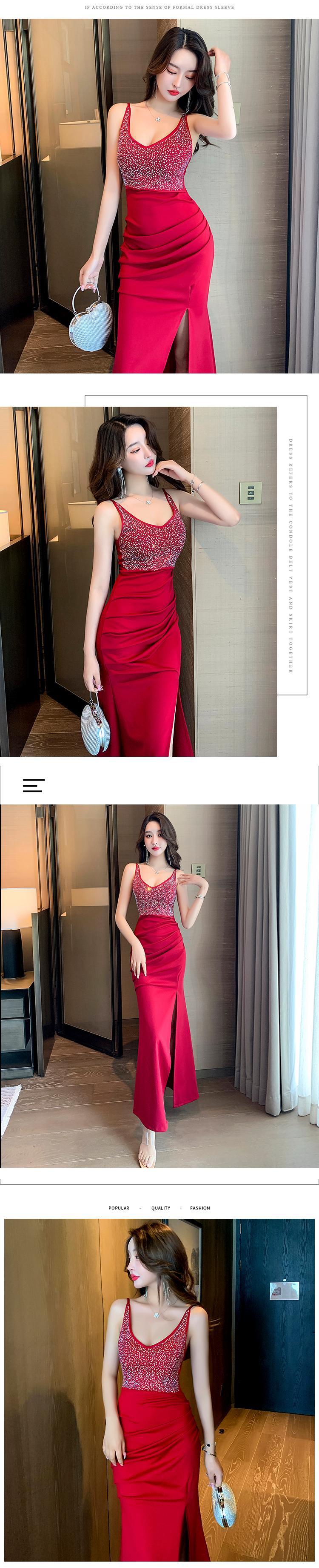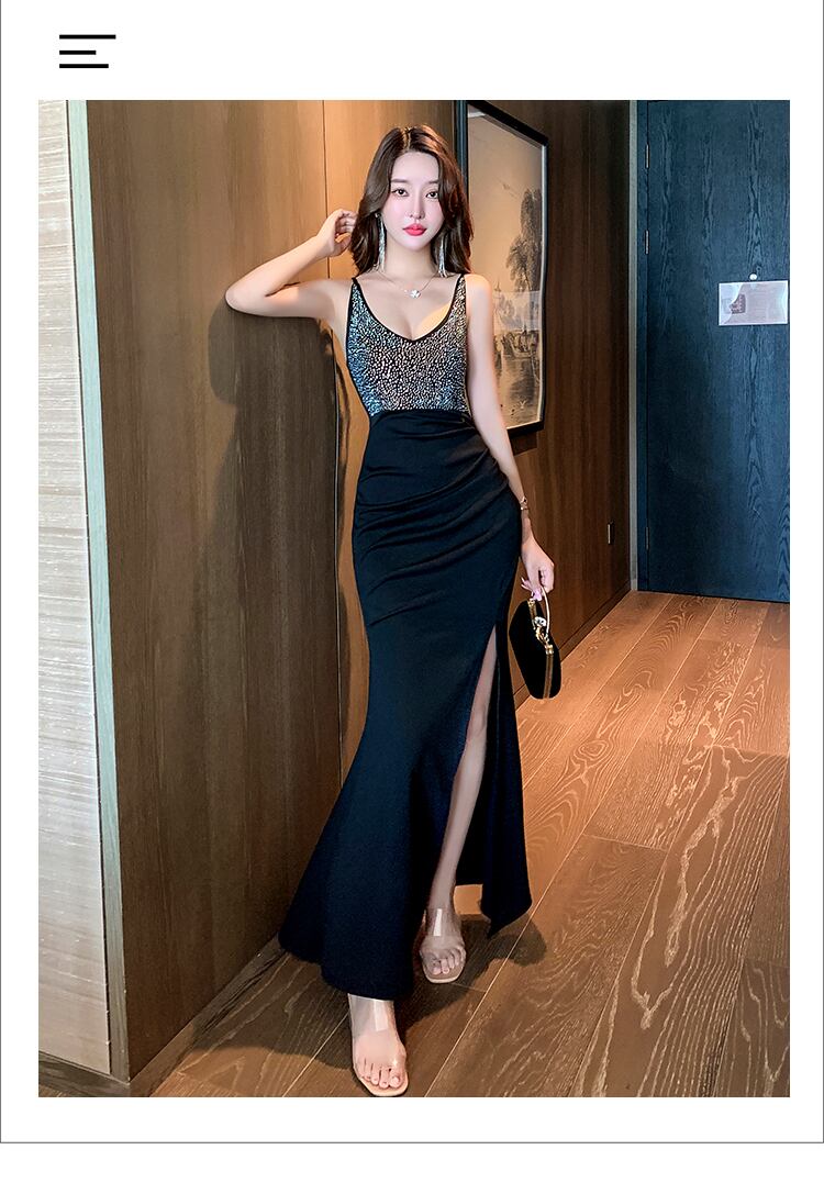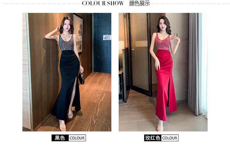 ナイトクラブの女性のナイトクラブのイブニングドレスロングスカート光沢のあるダイヤモンドセクシーなVネックスプリットサスペンダードレス micat99135646186