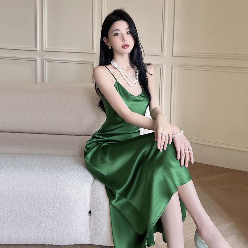 緑のイブニングドレスライトラグジュアリーニッチハイエンド旅行と休暇の気質セクシーなサテンロングサスペンダードレス micat67530795310