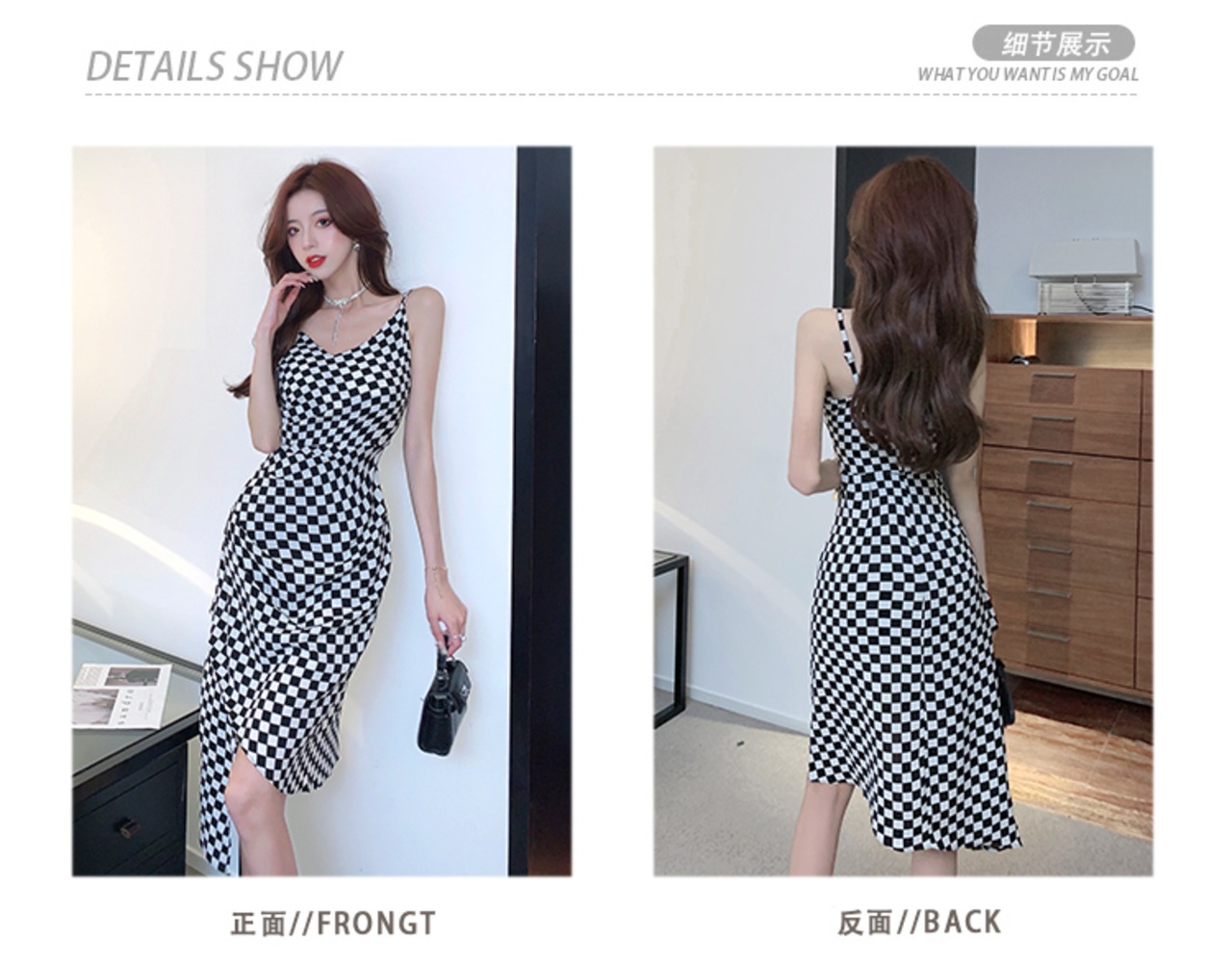 チェッカーボードチェック柄サスペンダースカートレディースサマーアウターデザインセンスニッチ気質セクシーイレギュラーミディアム丈ワンピース micat11154486524