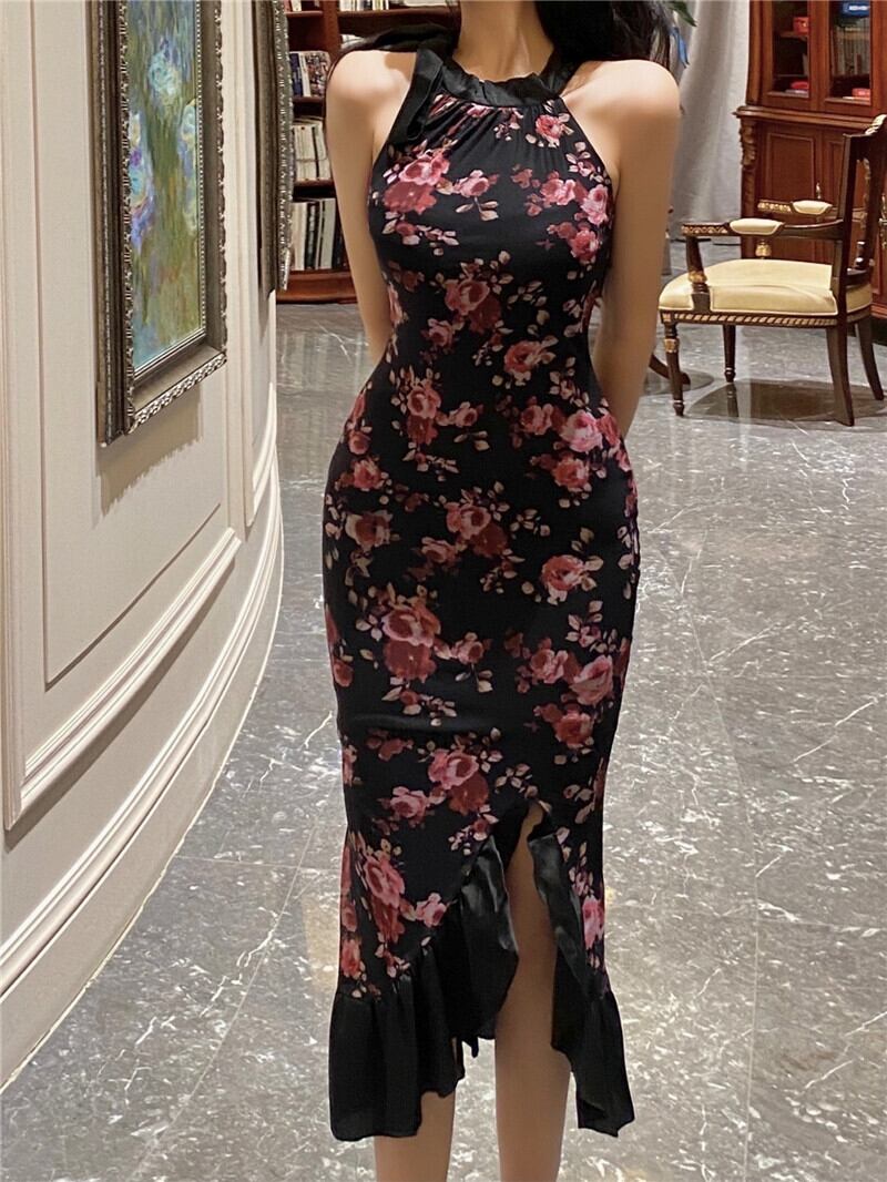 改良されたチャイナドレスのイブニングドレススカートライトラグジュアリーニッチハイエンド気質フローラルセクシーな見事なフィッシュテールミドル丈ドレス micat2246753448
