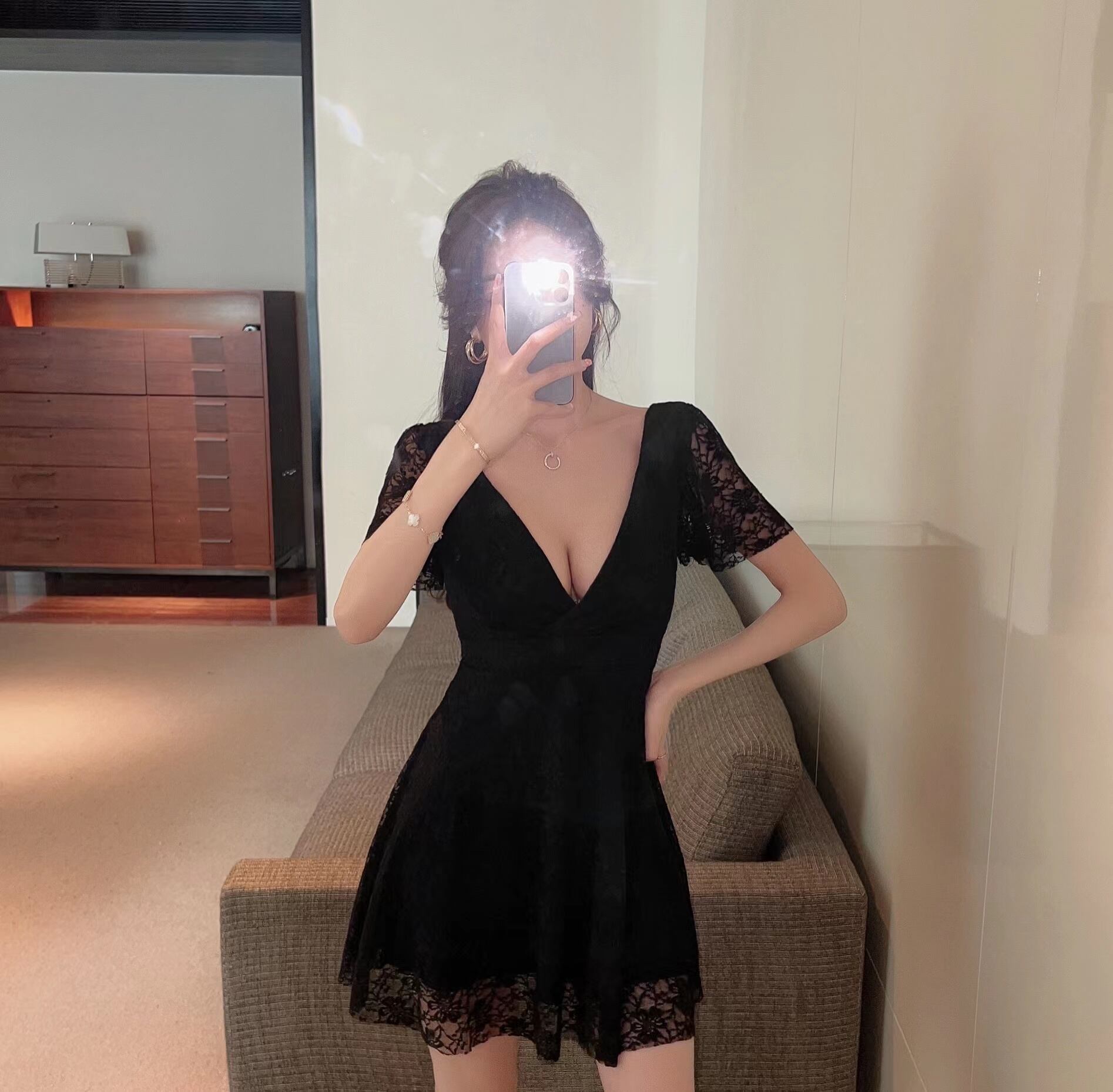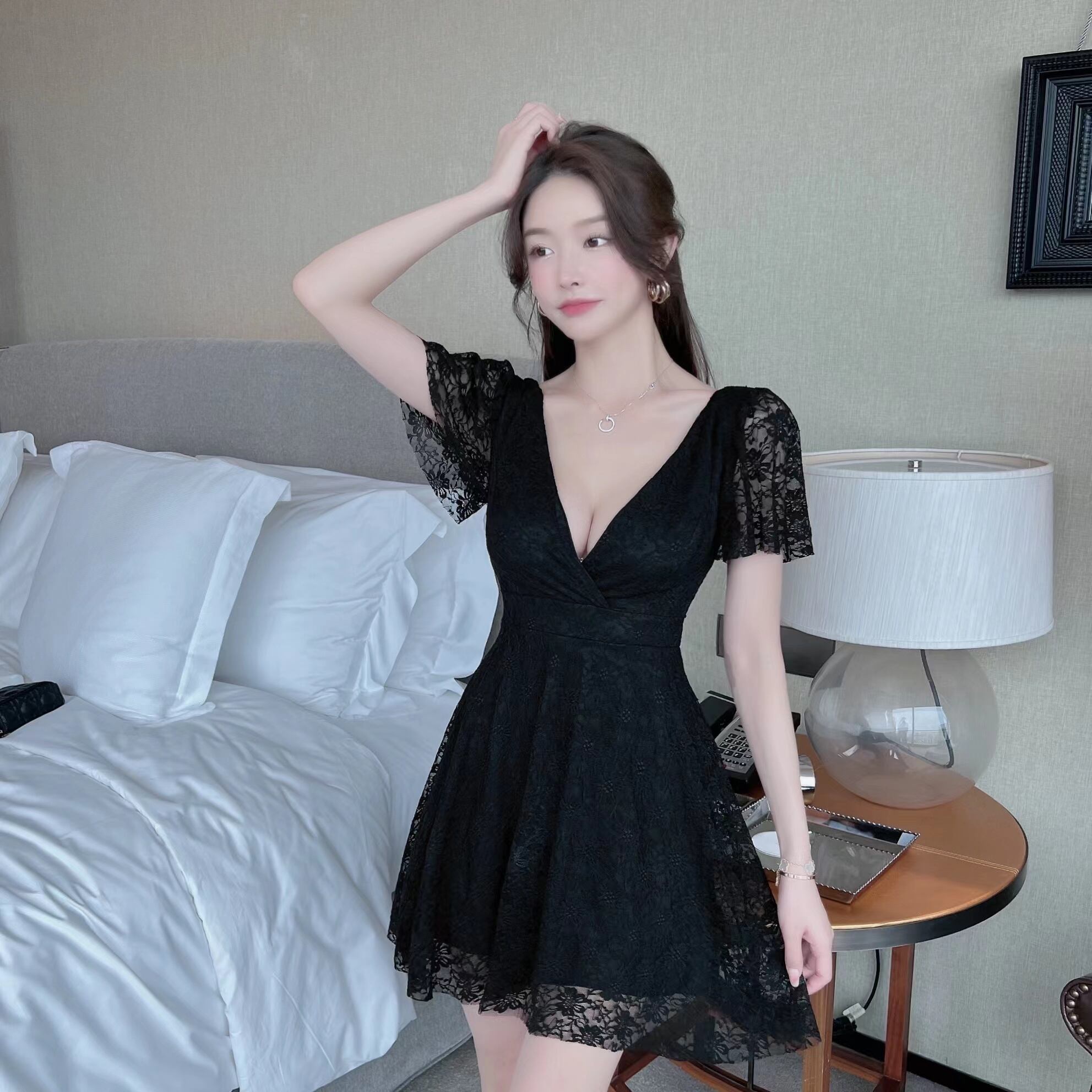 ナイトクラブ女性の足湯技術者作業服ナイトクラブセクシーなローカットディープVネックバックレスレースドレス micat17325104989
