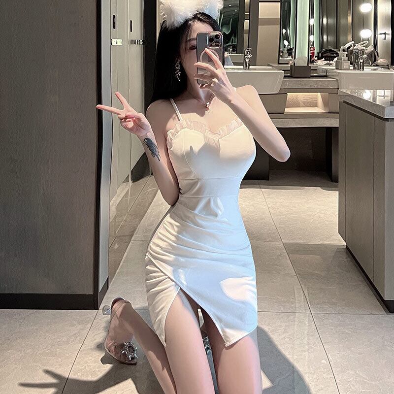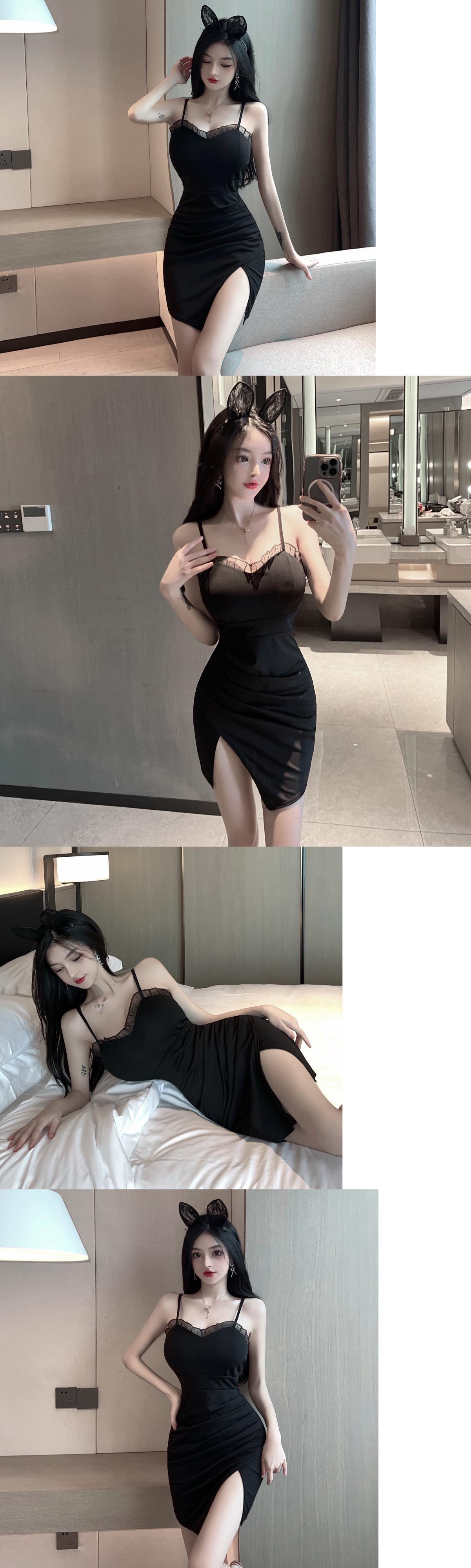 セクシーな夜景衣料品店レディースフレンチ菌エッジ気質Vネックスリムバッグヒップスリットサスペンダードレス micat48020828605
