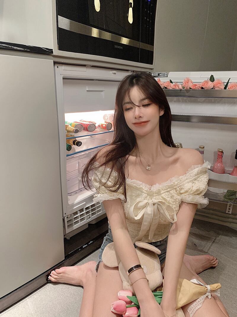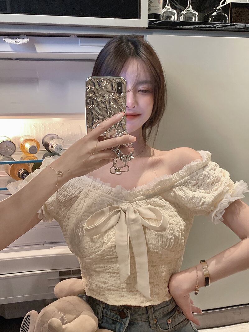 生放送服ポジェニック女性アンカー服純粋な欲望甘いフランスのセクシーなワンショルダーショートトップ micat20796917141