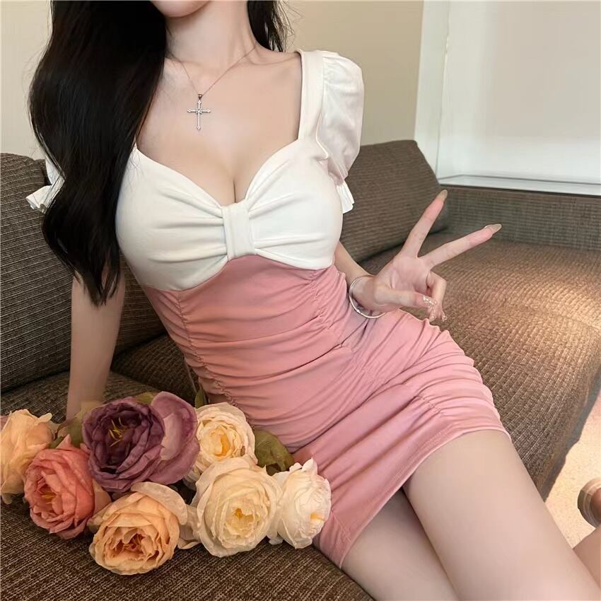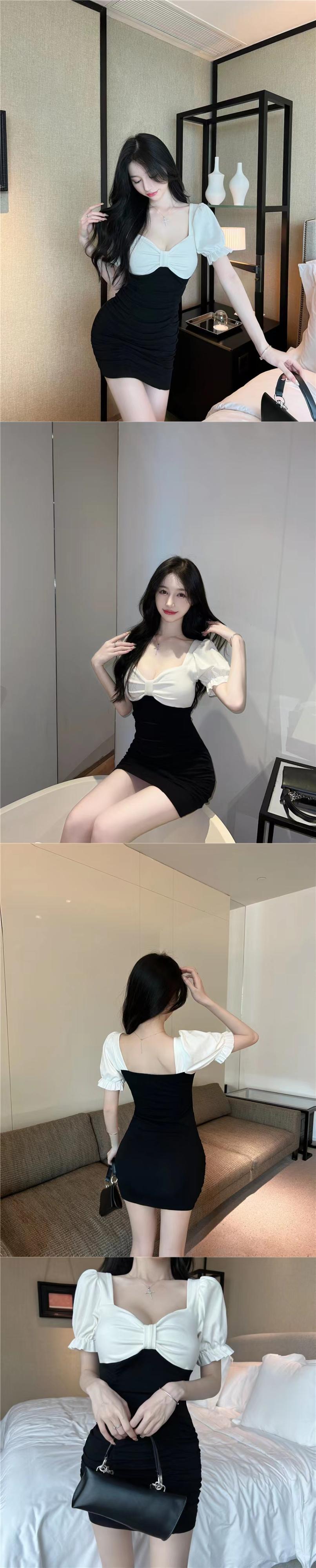 セクシーな夜の作業服店の女性のセクシーなローカットディープVネックアンカーフレンチパフスリーブフィッシュテールドレス micat83835138894