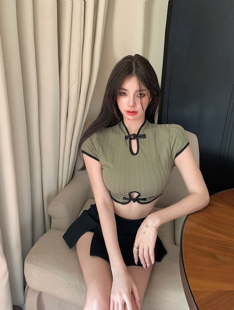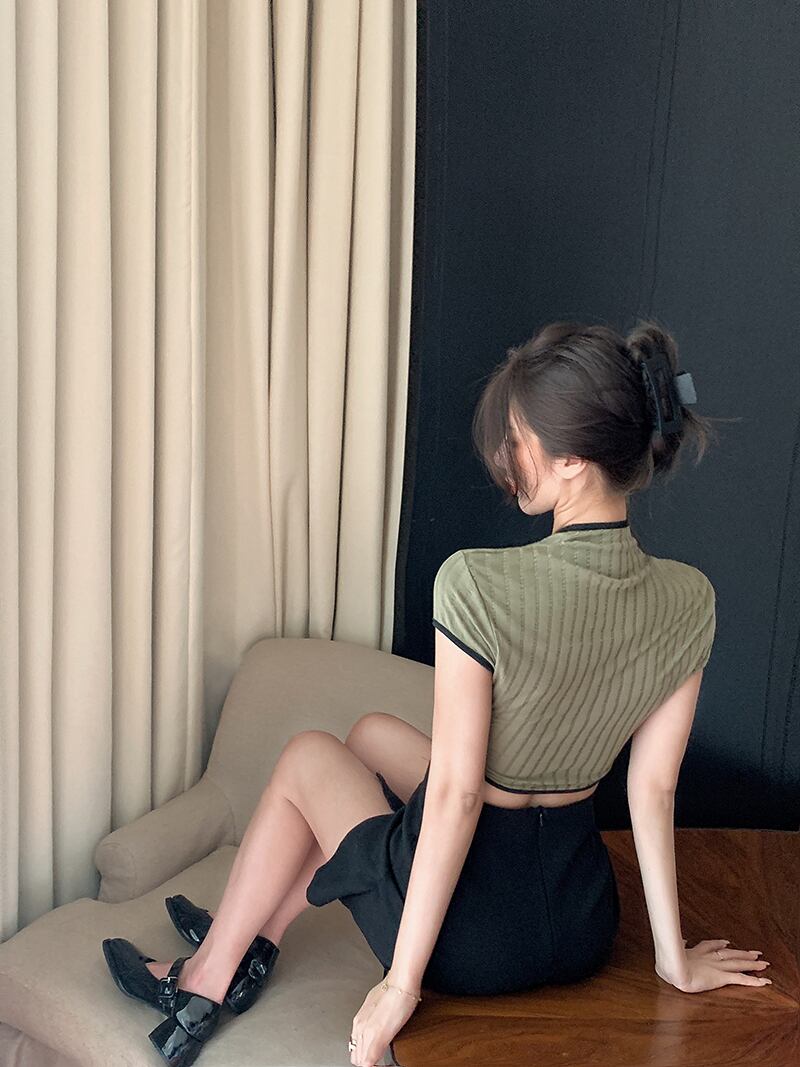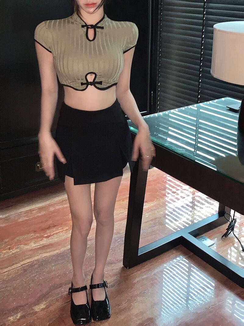 改良されたチャイナドレストップ女性の夏の若いレトロなボタンセクシーな短いへそニットTシャツ micat2727584207