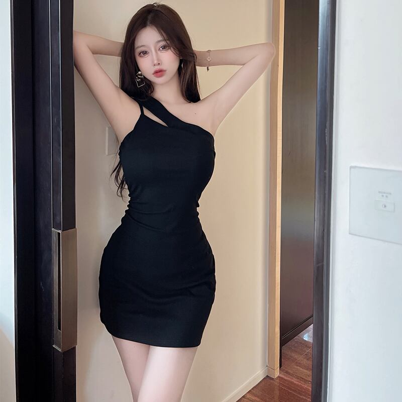 2022年の新しい女性の夏のデザインセンスニッチセクシーな斜めの襟肩から片方の肩バッグヒップサスペンダードレス micat53829625174