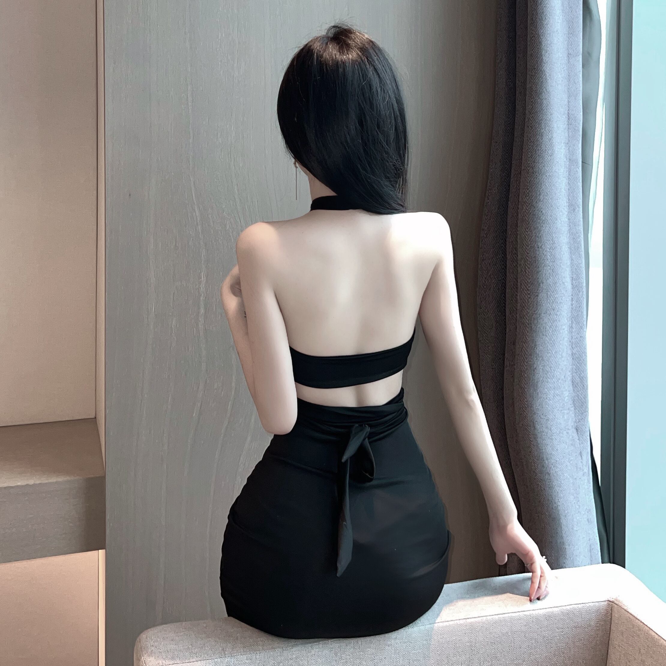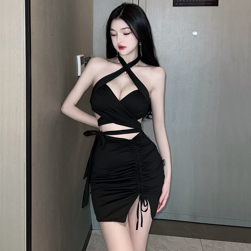 セクシーなナイトクラブのレディースオーバーオールは、ローカットのディープVネックショートホルタートップ+ショートスカートツーピースセットに合います micat8865043562