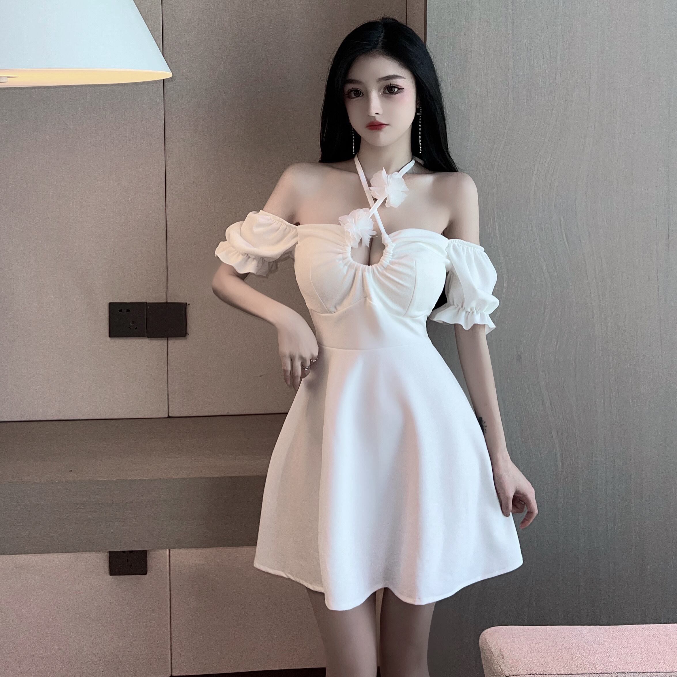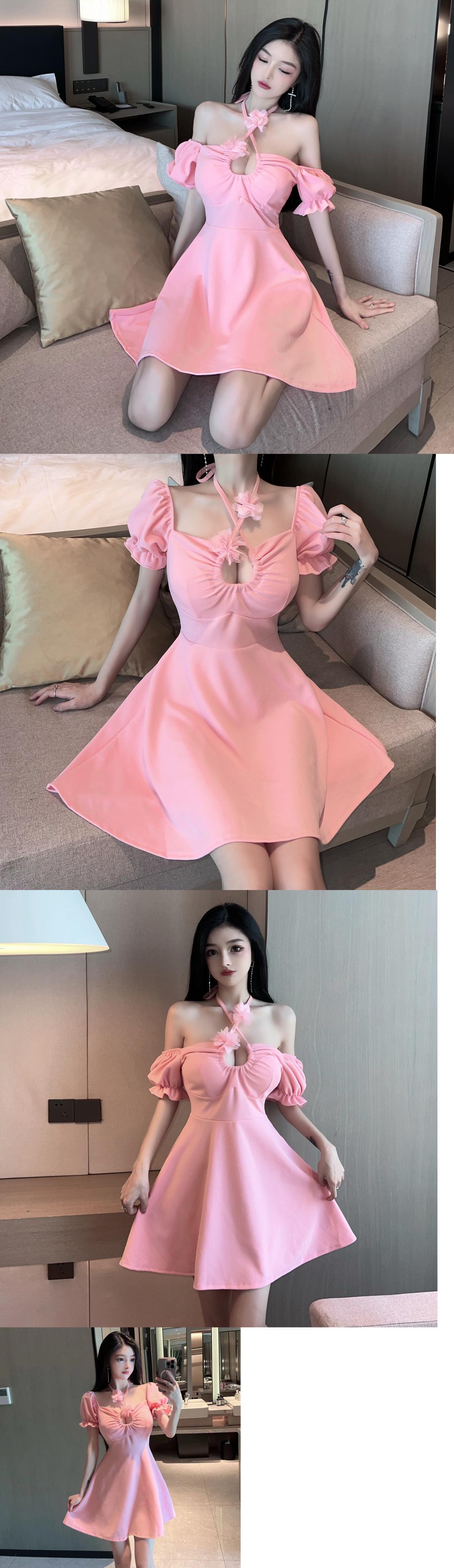ナイトクラブの女性のナイトクラブのオーバーオールローカットくり抜かれたウエストスリムフレンチパフスリーブホルタードレス micat66609475105