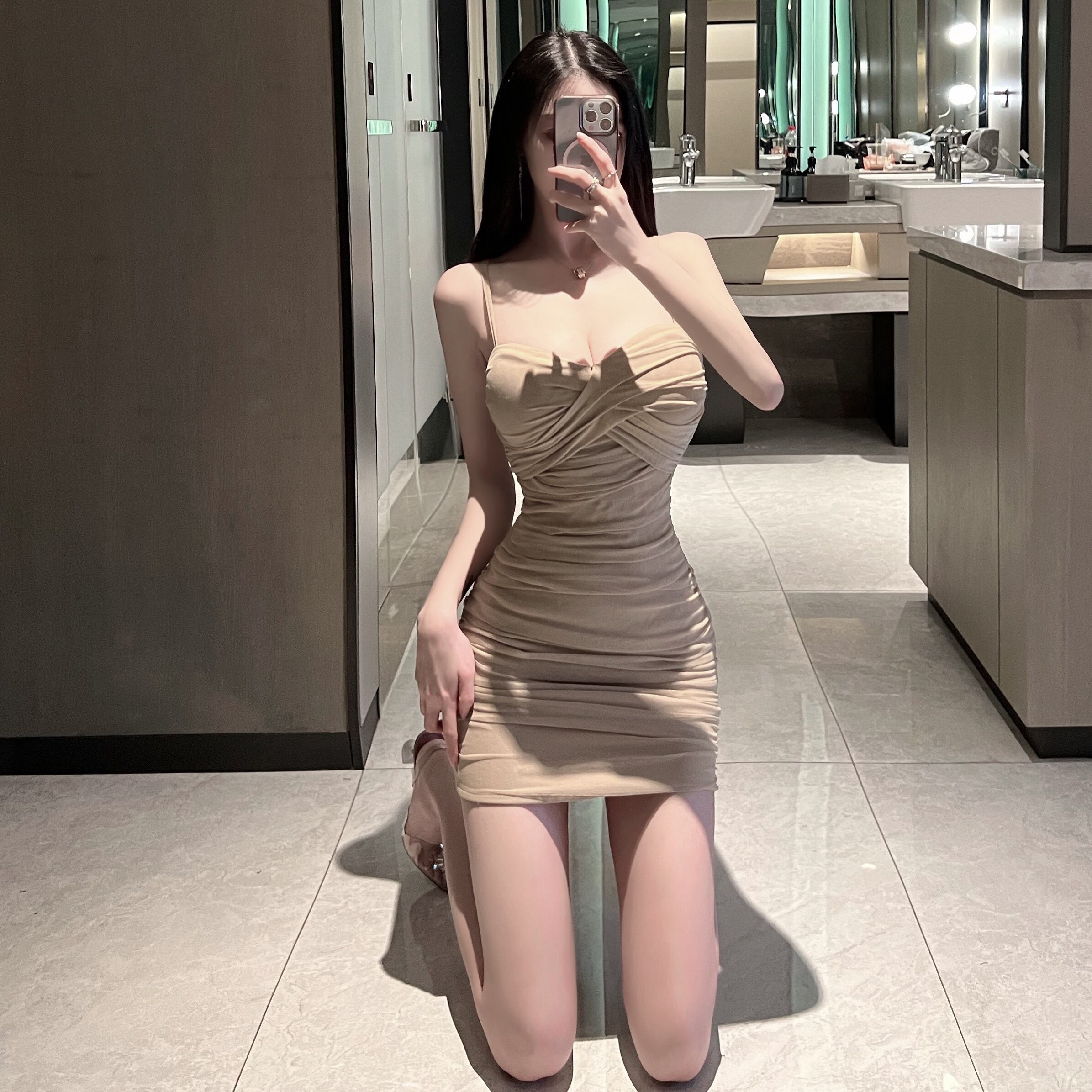 ナイトクラブの女性のナイトクラブの気質セクシーなローカットディープVネックメッシュスリムフィットとスリムバッグヒップサスペンダードレス micat49582367017