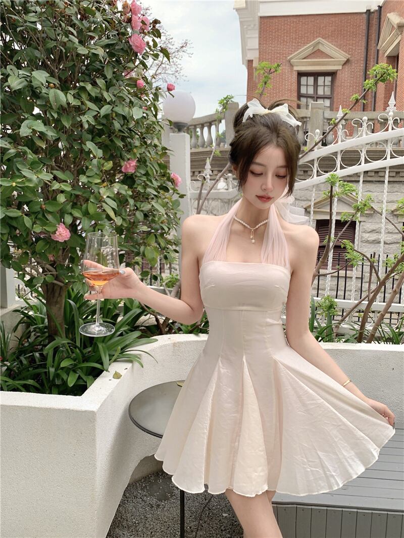 フランスの小さなドレススカートライトラグジュアリーニッチハイエンドバンケット気質スーパーフェアリーセクシーな背中の開いたふくらんでいるホルタードレス micat19730307960