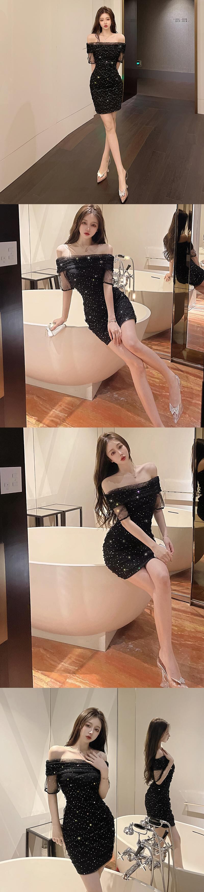 スーパーフェアリーバースデードレススカートライトラグジュアリーニッチハイエンドセクシーワンショルダーシャイニーショートメッシュドレス micat18566037717