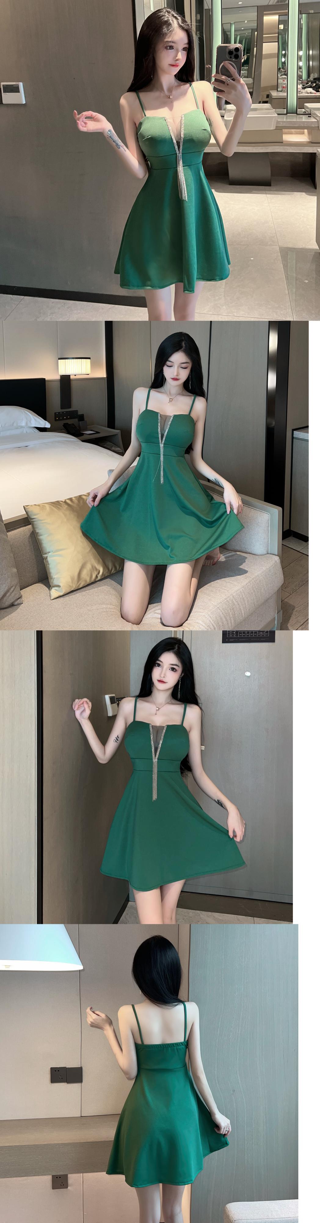 ナイトクラブの女性のナイトクラブのオーバーオールセクシーなローカットVネックメッシュステッチtelスリムサスペンダードレス micat66115902404