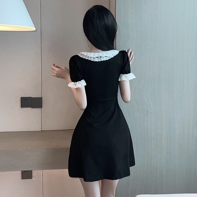 ライブ服ポジェニック女性アンカー服フレンチヘップバーンスタイルの甘いレースレースパフスリーブドレス micat58199829474