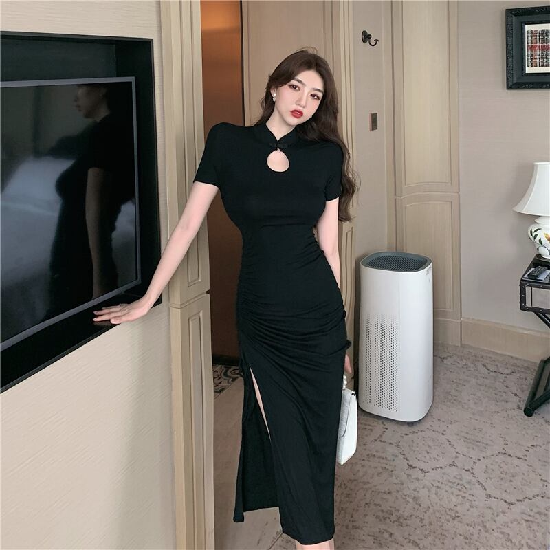 改良されたチャイナドレス2022新しい女性の夏の若い無地の毎日のセクシーなスリットミドル丈ドレス micat32487234606