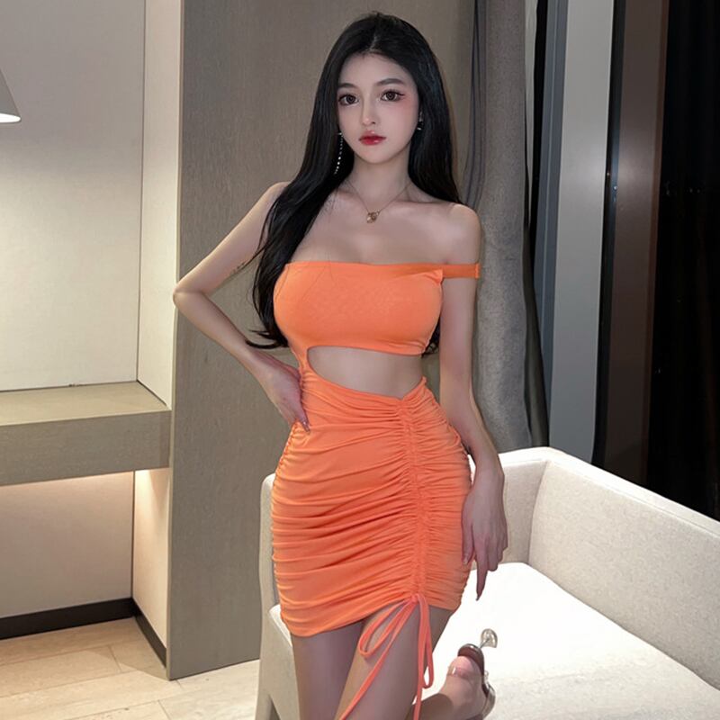ナイトクラブ婦人服技術者オーバーオールセクシーな斜めの襟肩から片方の肩をくり抜くウエストバッグヒップサスペンダードレス micat72570065438