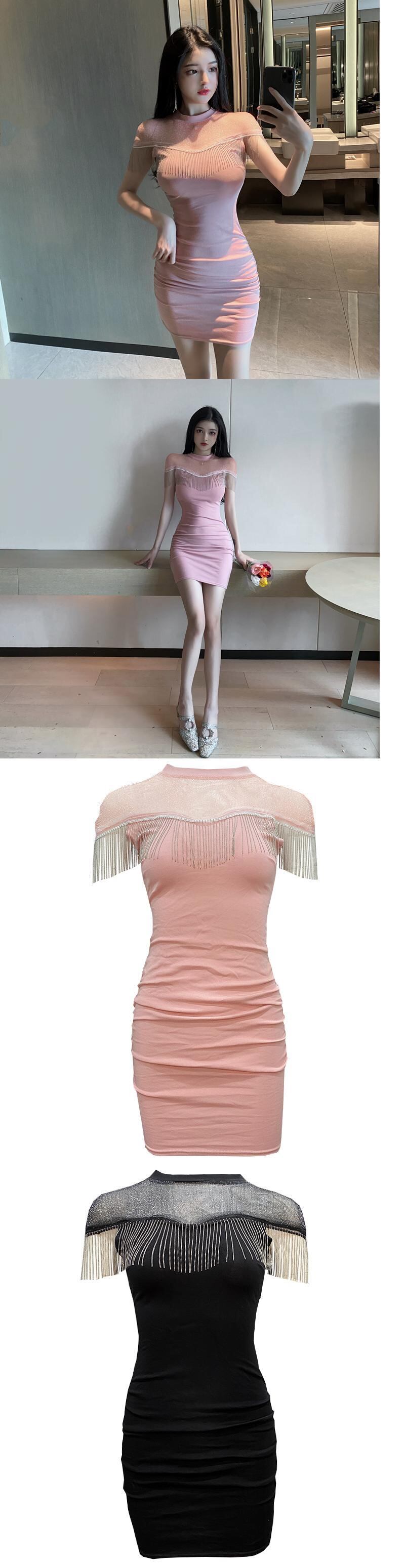 ナイトクラブレディースナイトクラブ光沢のあるシルクtel夏気質セクシーメッシュステッチパッケージヒップドレス micat60700143296