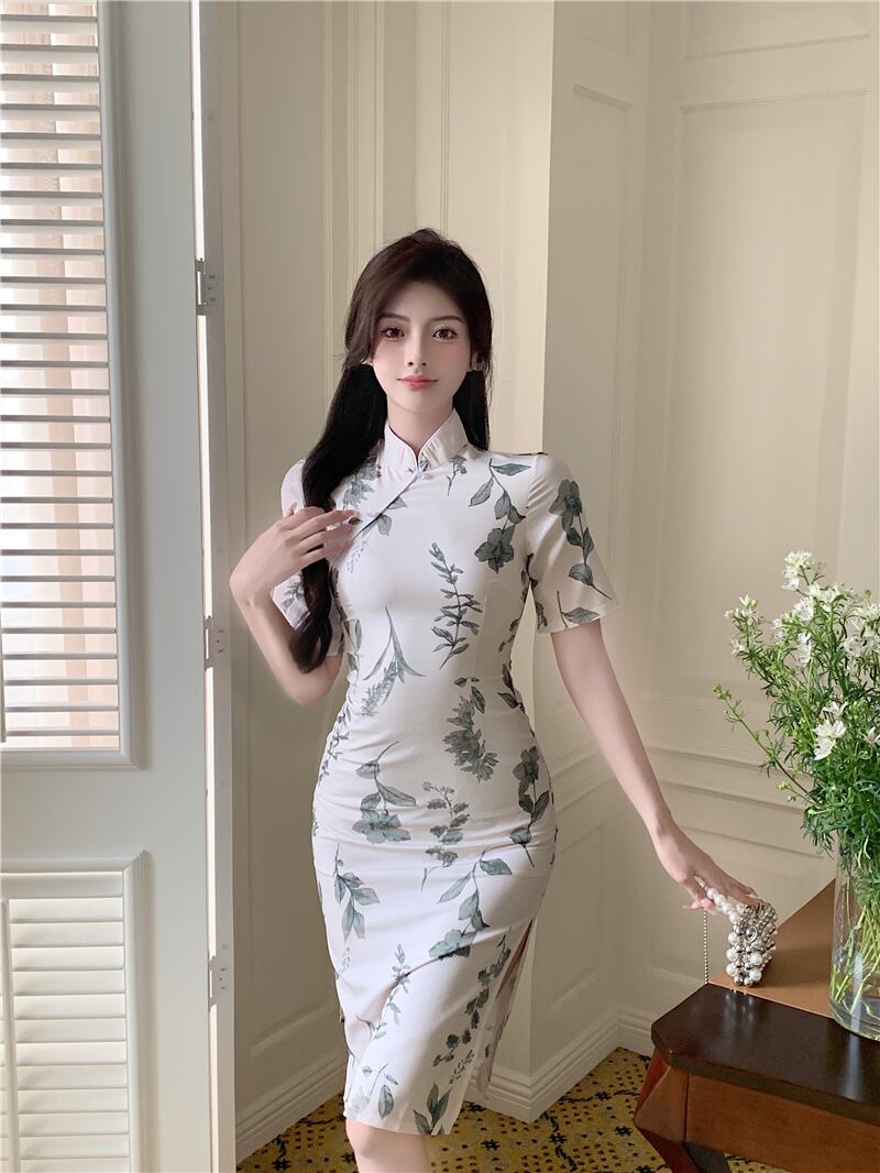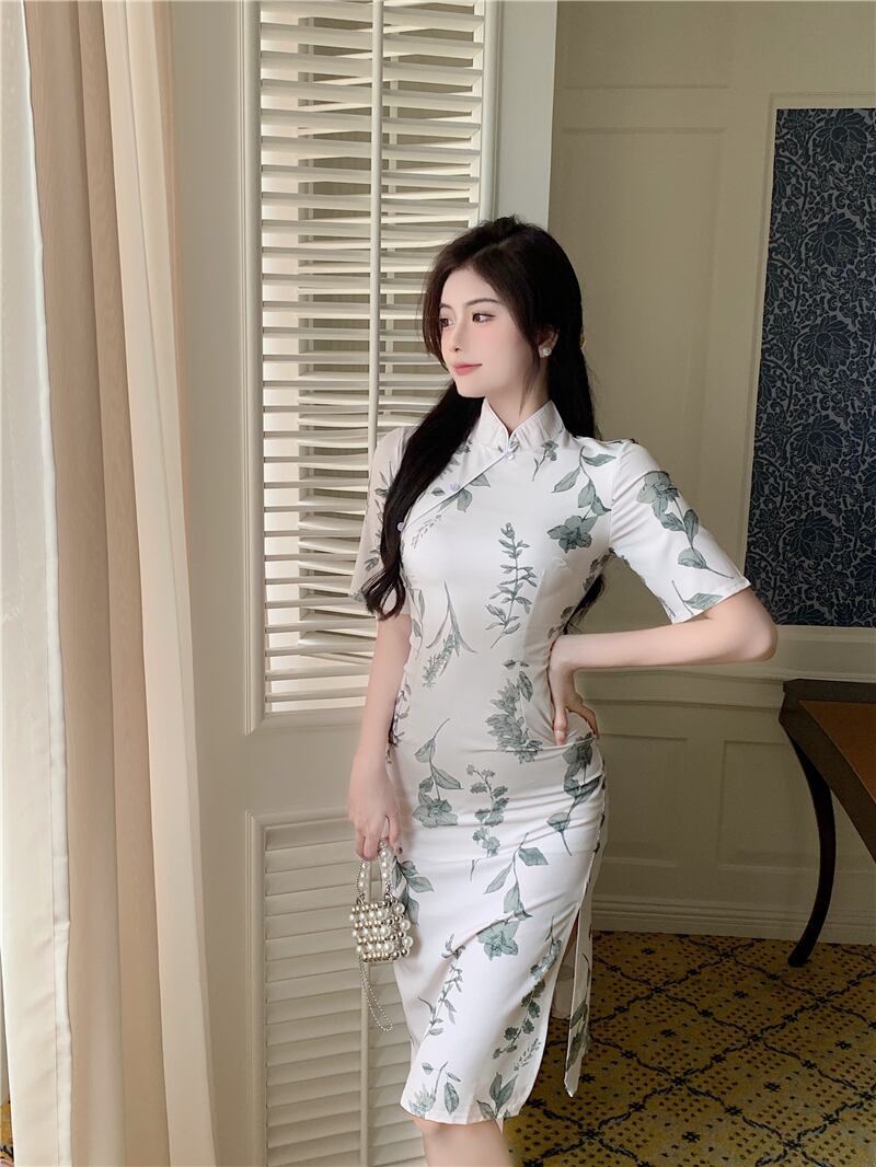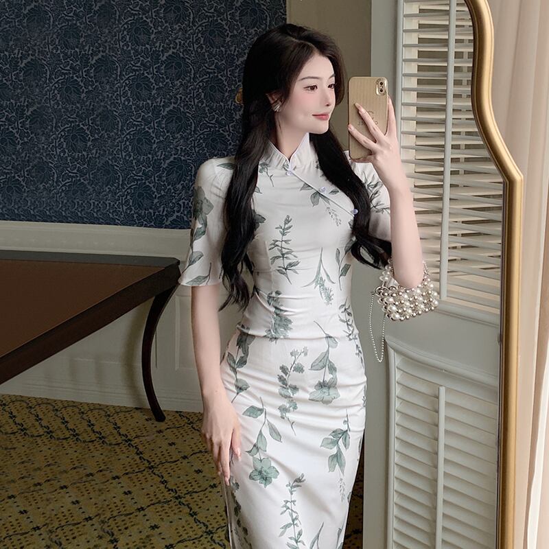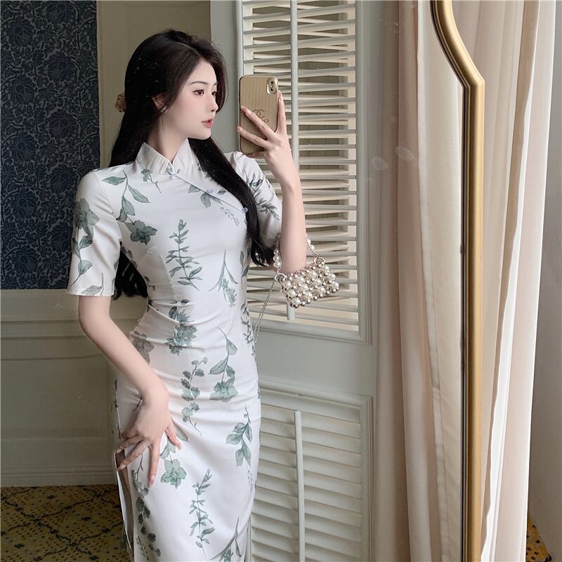 ターコイズチャイナドレス2022新しい若いスタイルの気質ハイエンドレトロ共和国スタイルの改良されたミドル丈のドレス micat62662636914