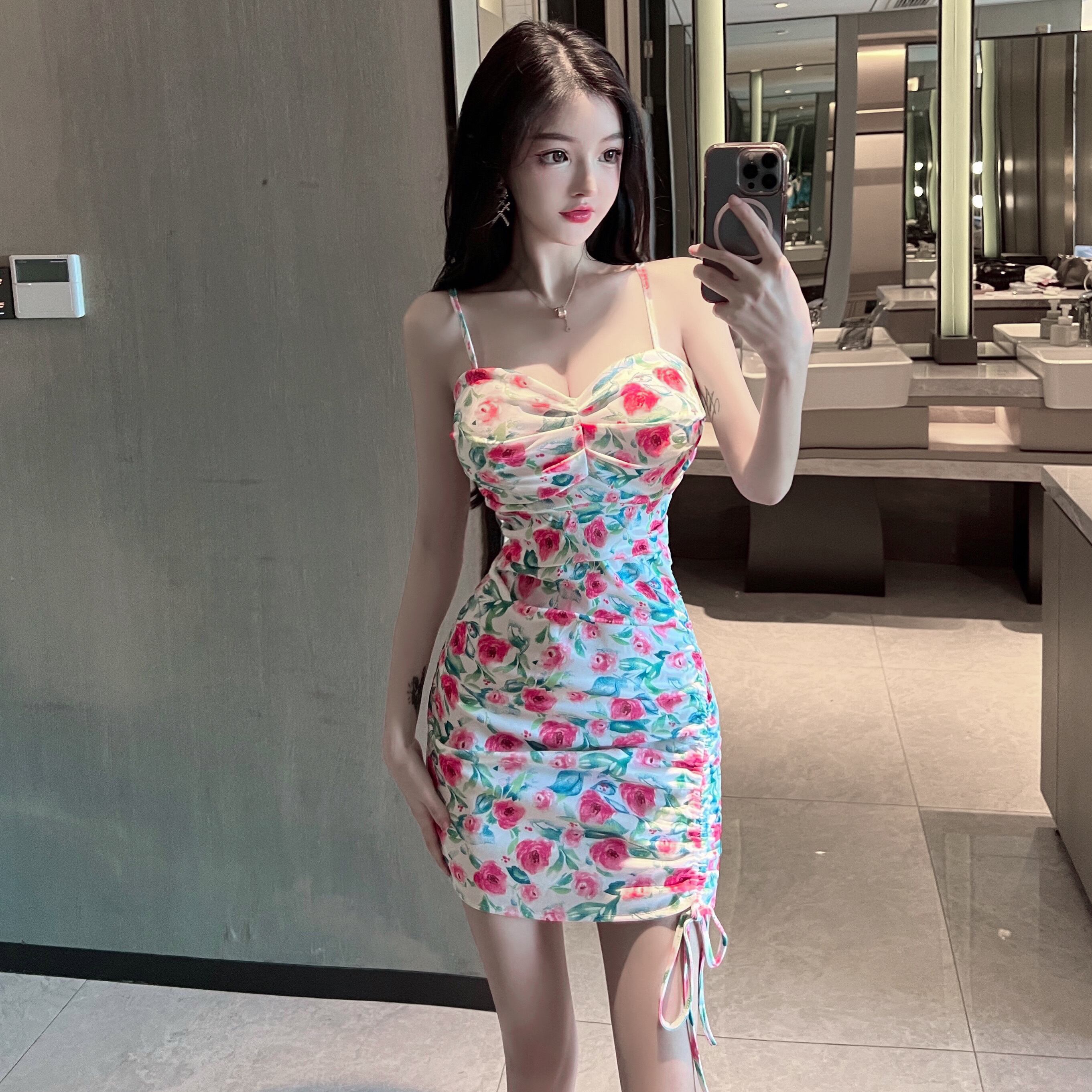スリングドレス夏の純粋な欲望風レトロカラーセクシープリーツバッグヒップショートボトミングドレス micat2932265642