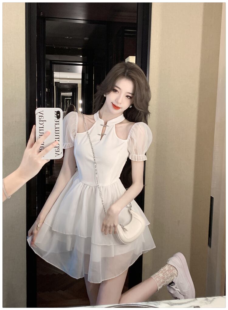 白の改良されたチャイナドレス若い改良された夏フランスのスーパーフェアリー毎日のセクシーなオフショルダーホルターネックドレス micat81779882543