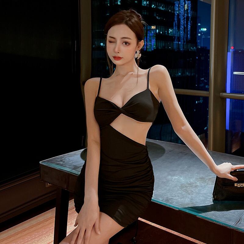 夜の作業服ナイトクラブの作業服店女性の黒気質セクシーなローカットVネックサスペンダードレス micat75224073479