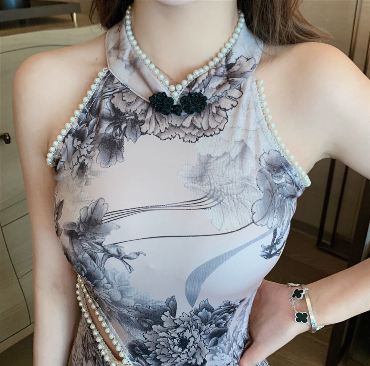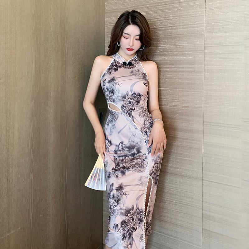 改良されたチャイナドレスのイブニングドレススカートライトラグジュアリーニッチハイエンド気質中国風ビーズセクシーミドル丈ドレス micat31992683473