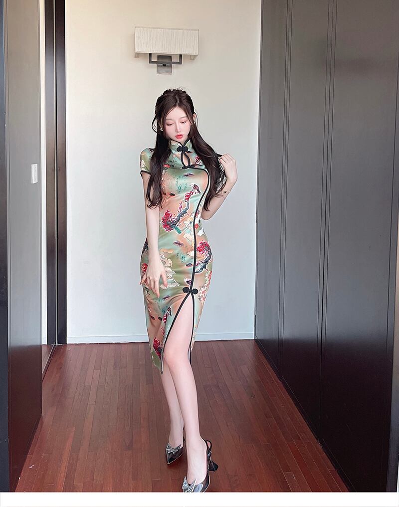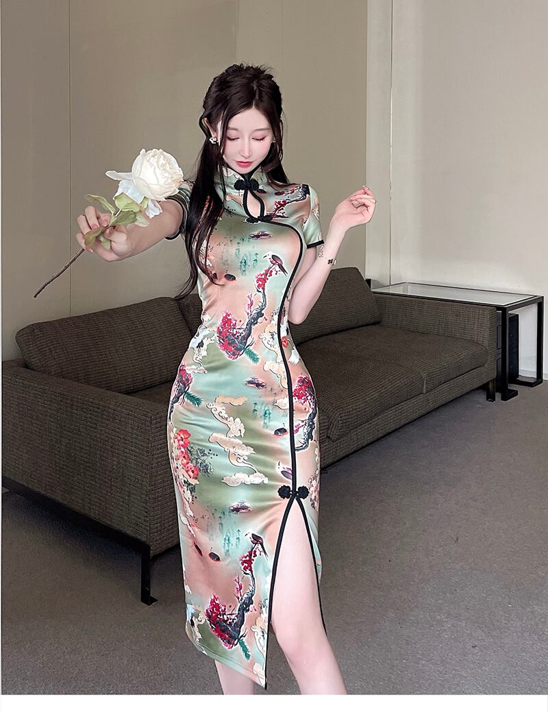 レトロな中華風チャイナドレス若い改良版ハイエンド気質セクシースリットミドル丈ドレス micat49714783146