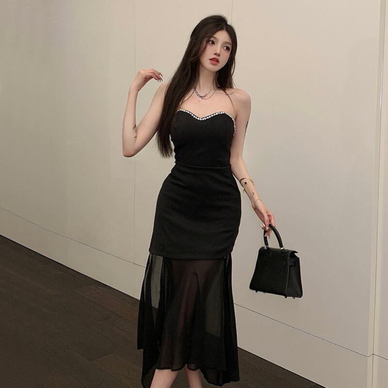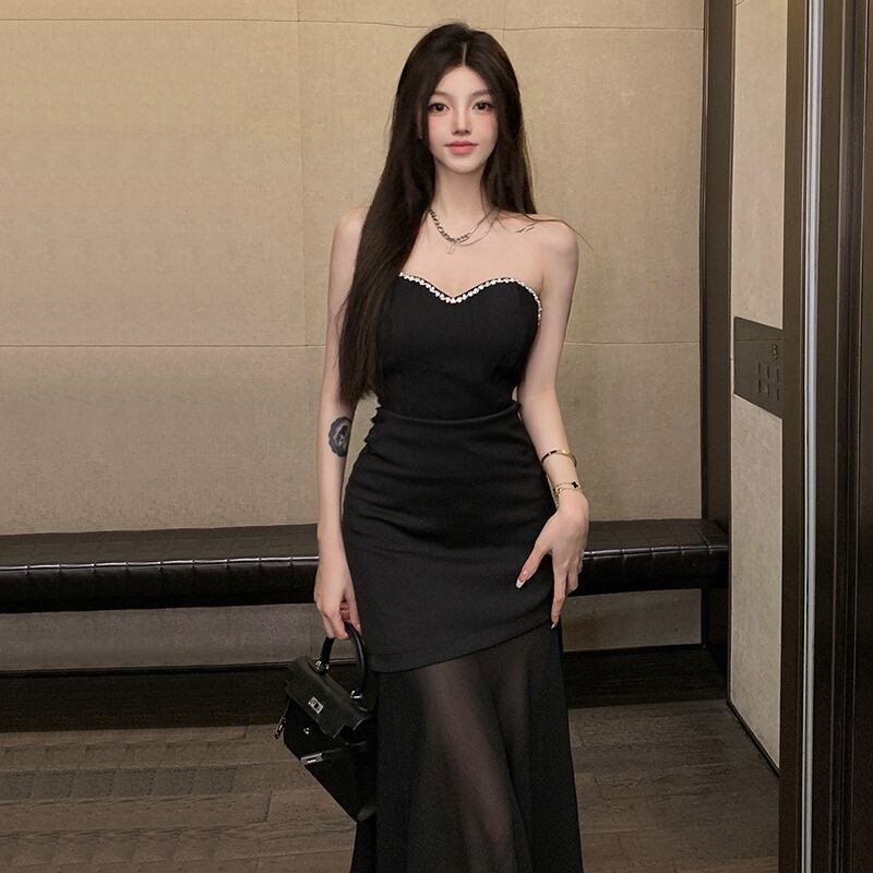 イブニングドレスロングドレスナイトクラブレディースナイトクラブ気質ダイヤモンドをちりばめたセクシーなVネックロングフィッシュテールチューブトップドレス micat87735310599