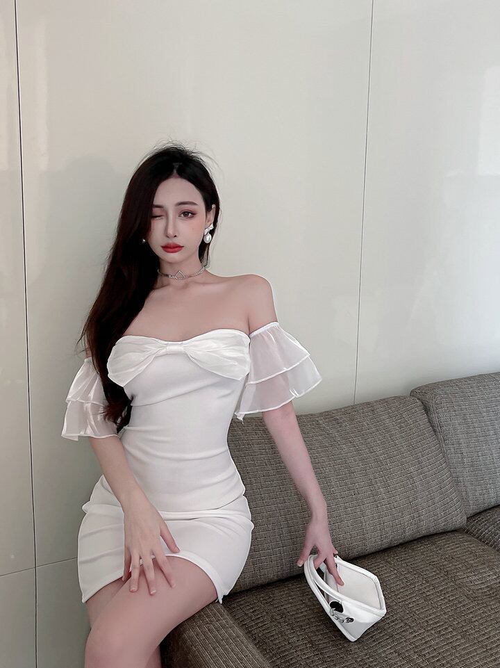 フランスの小さなドレススカートライトラグジュアリーニッチハイエンド気質甘い弓セクシーなワンショルダーチューブトップドレス micat46741236386