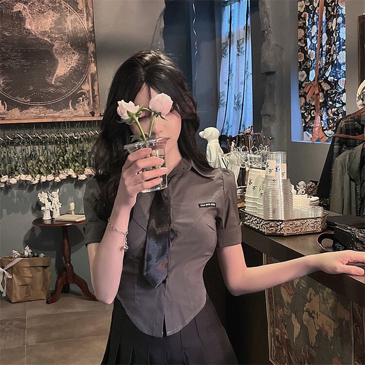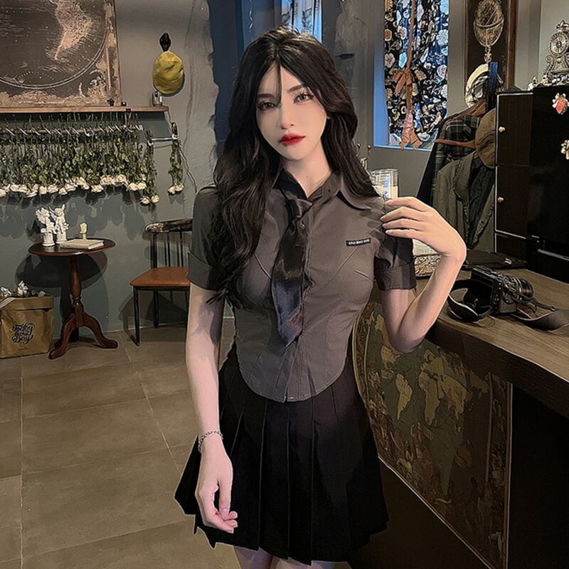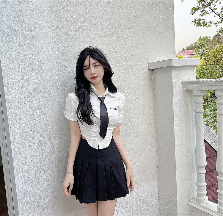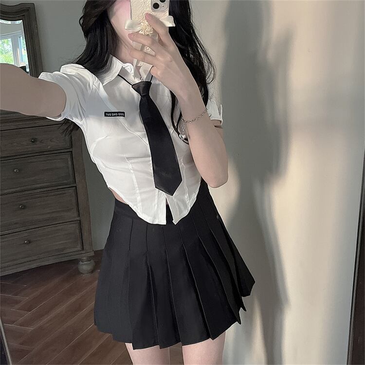 jkユニムスーツ女子大生スタイルネクタイセクシータイトショートシャツトッププリーツショートスカートツーピースセット micat29685727388