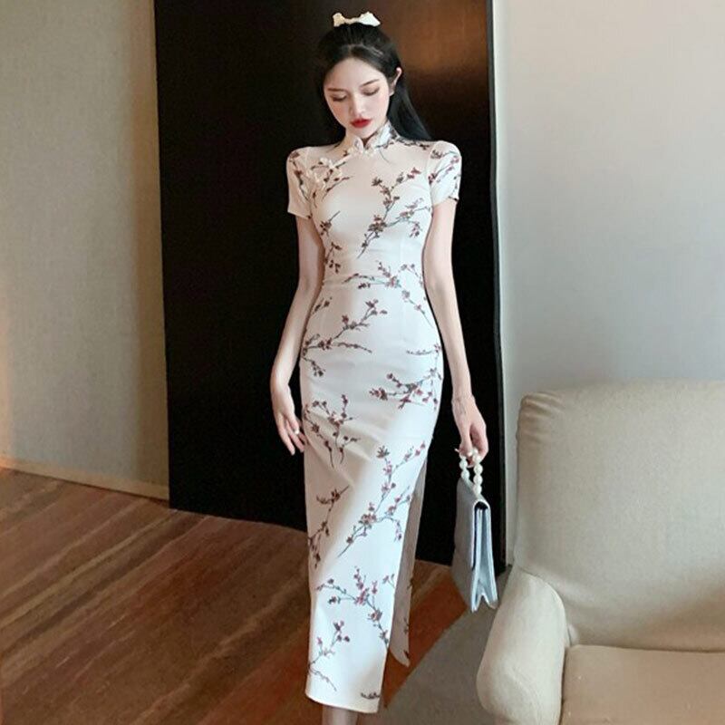 チャイナドレス2022新しいロングスカートレトロプラム若い改良版ハイスリットミドル丈ドレス micat41989916199