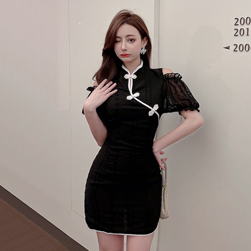 フランスの新しいナショナルスタイルのチャイナドレスヤング音律ハイエンド改良版セクシーなショートストラップレスレースドレス micat23269915803