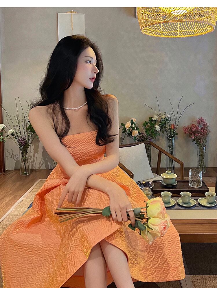 イブニングドレススカートライトラグジュアリーニッチハイエンド旅行ホリデーバンケット気質セクシーロングビッグスイングチューブトップドレス micat22953328021