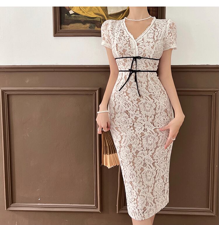 イブニングドレススカートフェミニンな気質ライトラグジュアリーニッチハイエンドサマーライト成熟したフランスのセクシーなミドル丈レースドレス micat4911033298