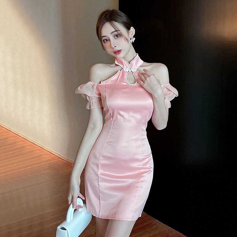 ライブ放送服ポジェニック女性アンカー服若いフランスのセクシーなオフショルダーハンギングネック改善されたチャイナドレス micat82760183179