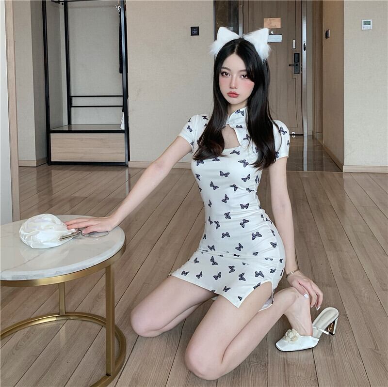 改良されたチャイナドレス、若者の純粋な欲望、気質、セクシーなくり抜かれたショートバッグヒップスリットドレス micat85648653455