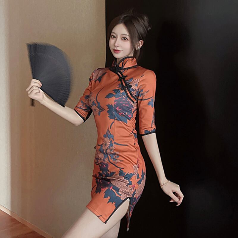 チャイナドレス若い生放送服ポジェニックアンカー服レトロ共和国スタイルプリントセクシーなドレス micat85402913168