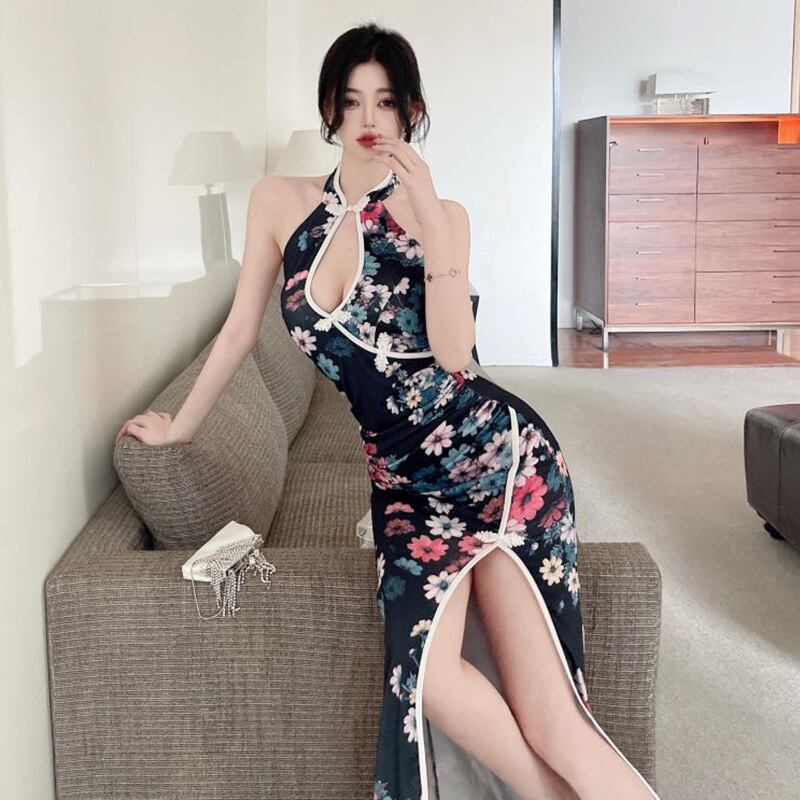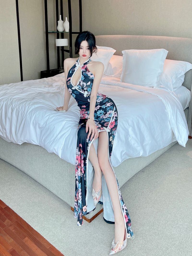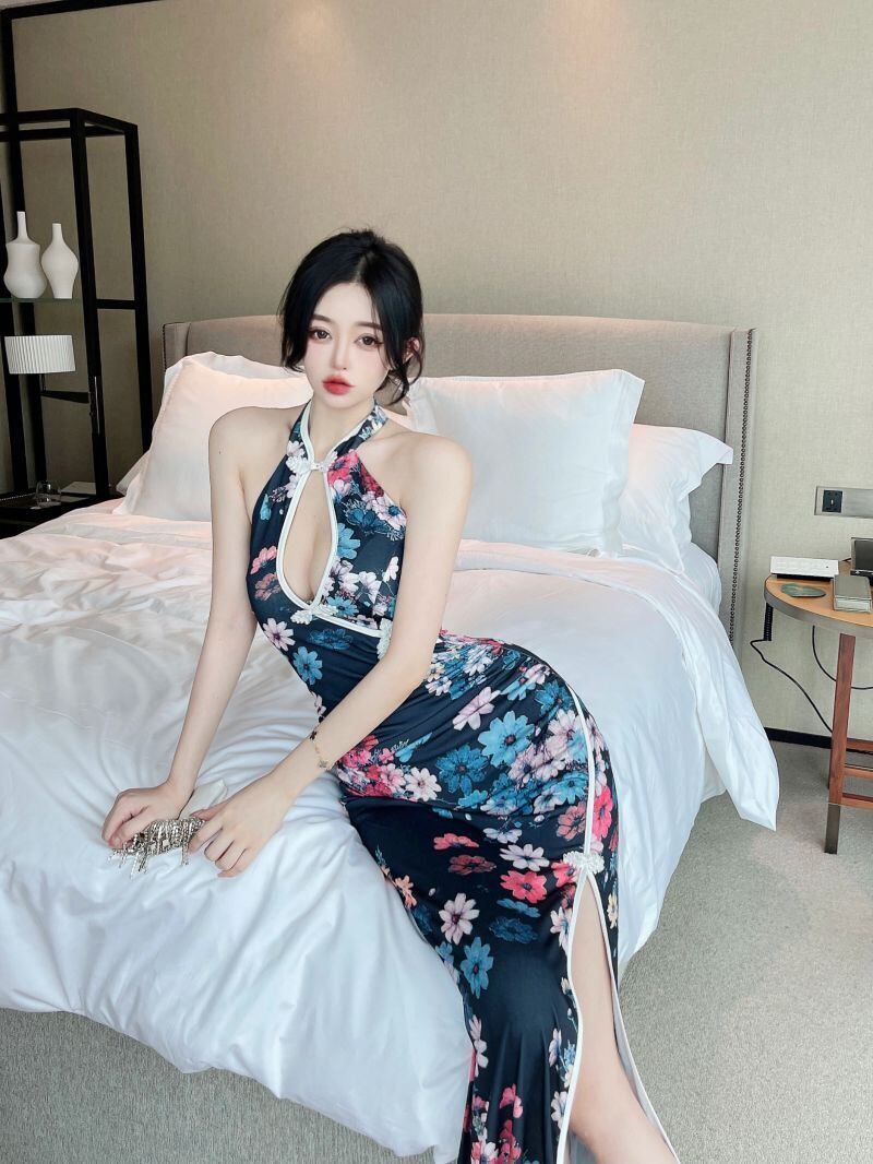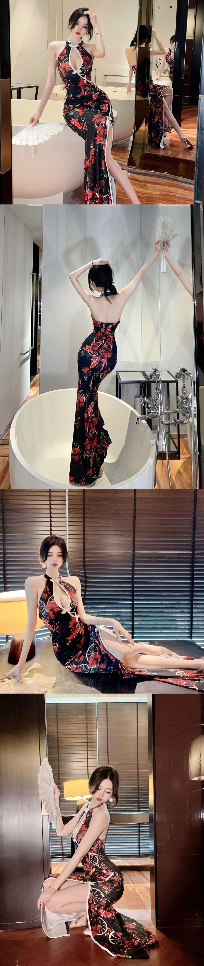 チャイナドレスイブニングドレスロングスカート女性中国風改良版宴会気質セクシー中空スリットホルタードレス micat28564420837
