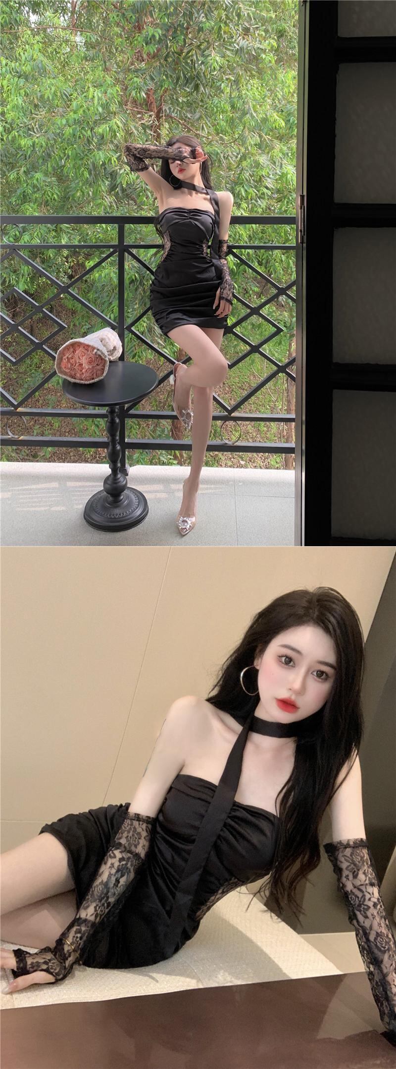 バーディスコドレスナイトショップ女性の小さなドレス気質セクシーなレースステッチホルターネックチューブトップドレス micat8913773403