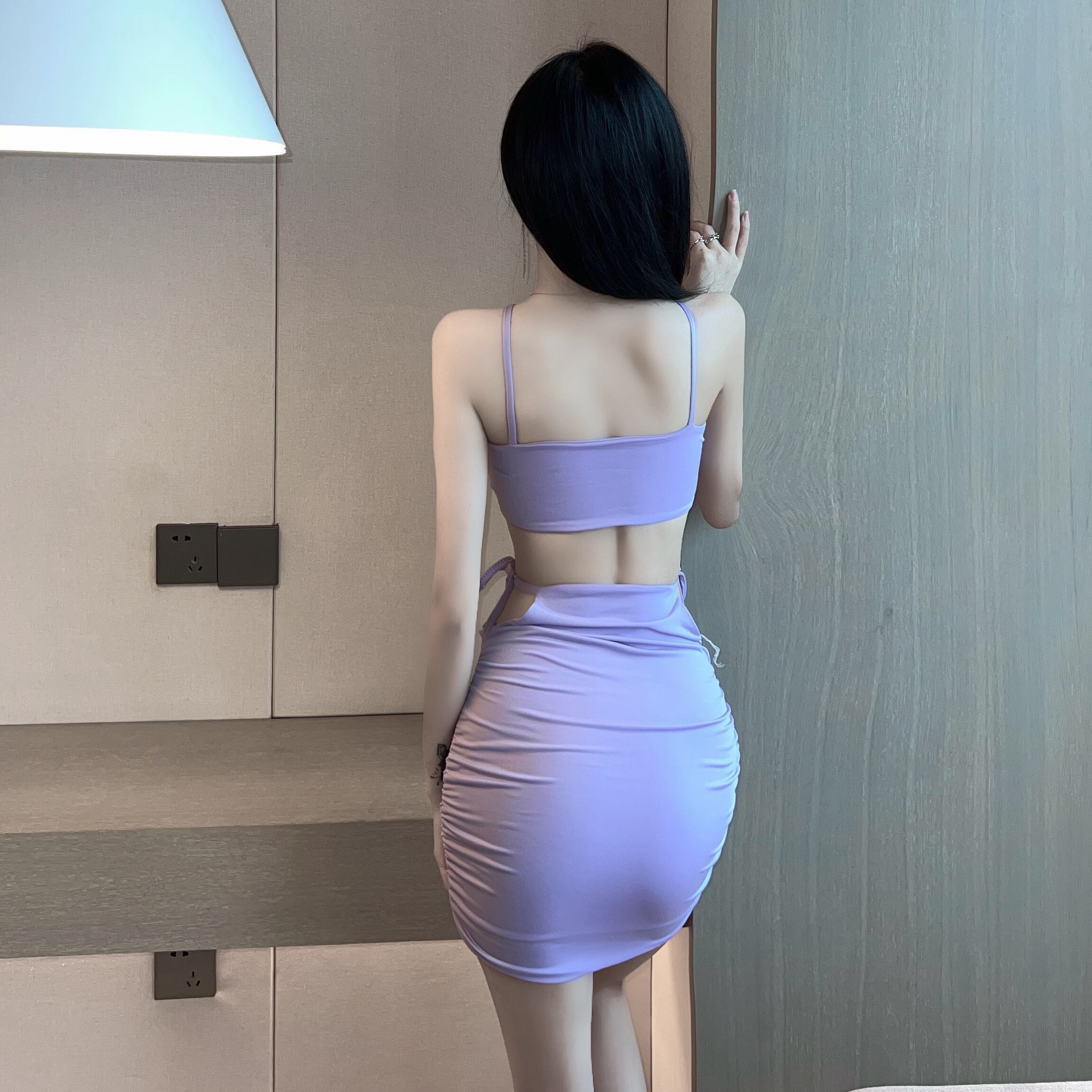 セクシーなナイトクラブの女性の技術者の作業服スーツ気質中空ショートオフショルダートップ+ショートスカートツーピースセット micat55272789306