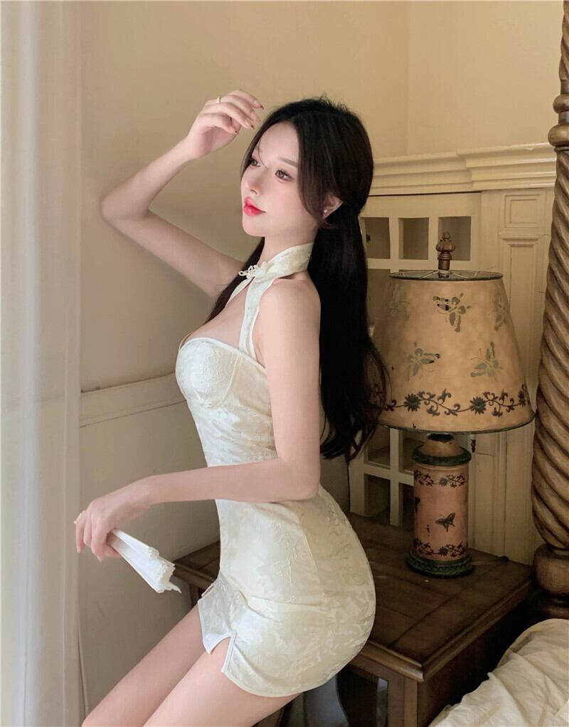 チャイナスタイルのショートイブニングドレススカートライトラグジュアリーニッチハイエンド気質若いセクシーなホルターネックチャイナドレス micat93989987930