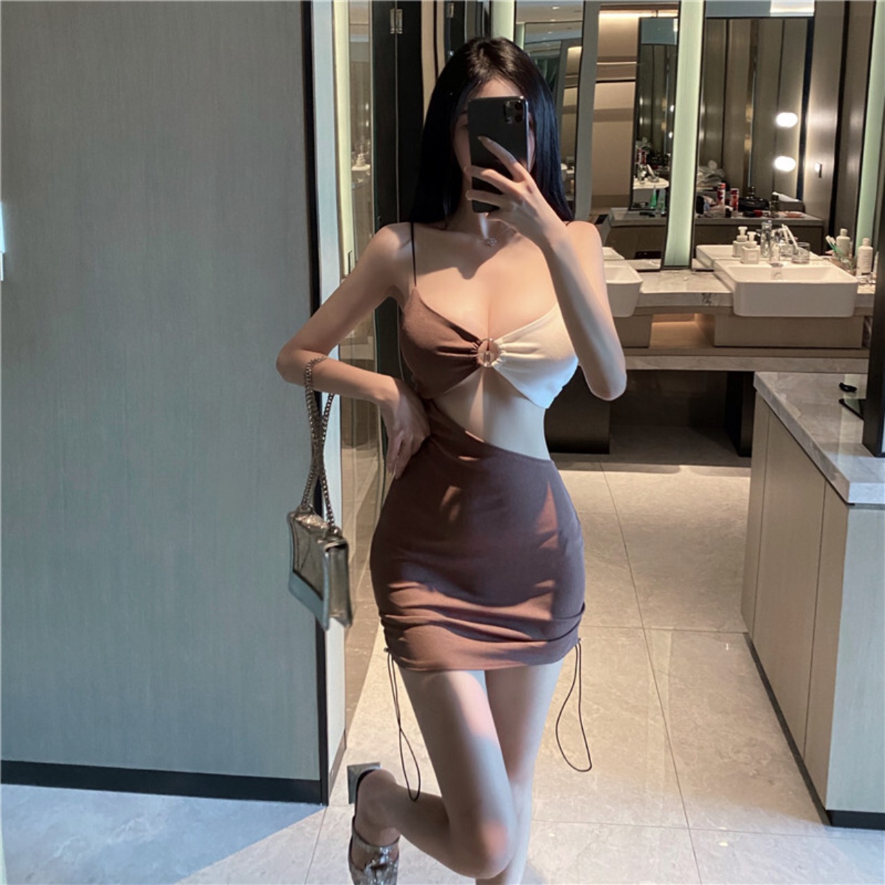 夜の作業服ナイトクラブの作業服店女性のカラーマッチングセクシーな中空ローカットVネックサスペンダードレス micat24341543343