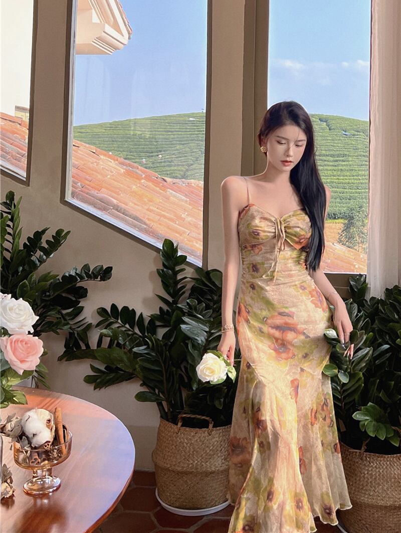 旅行休暇ビーチイブニングドレススカートライトラグジュアリーニッチハイエンドレトロ気質セクシーな中空サスペンダードレス micat630858738
