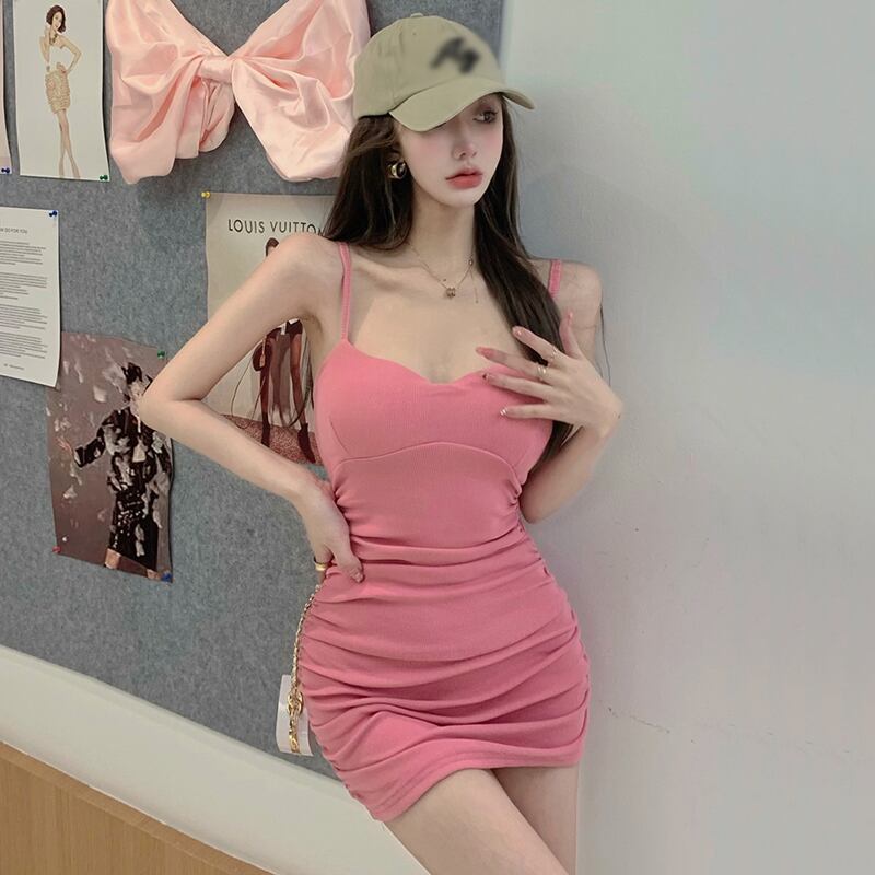 スリングワンピースサマーピュアデザイーンウィンドベーシックセクシーローカットディープVネックボトミングニットワンピース micat87274451629