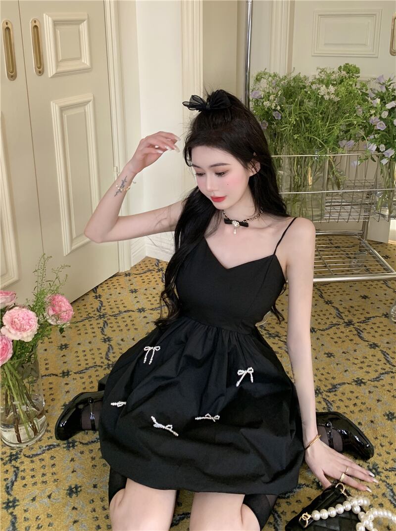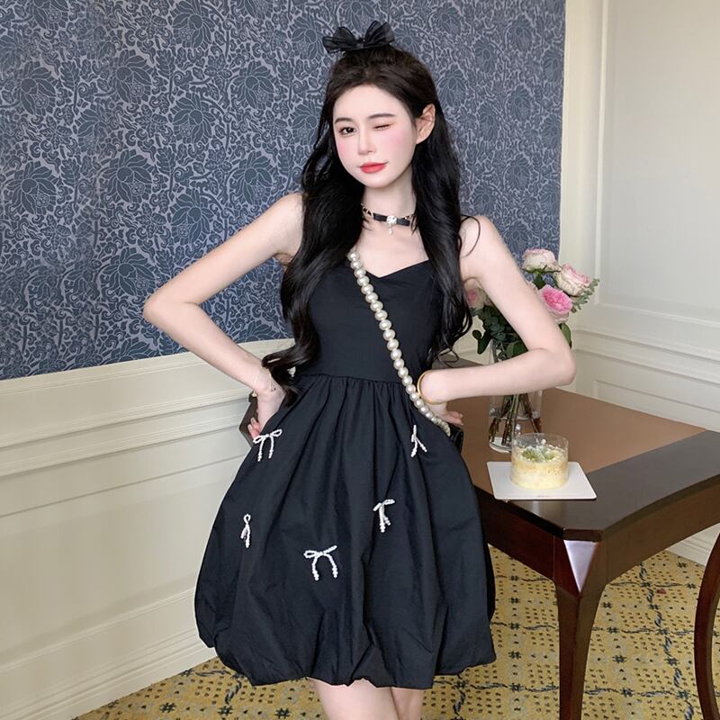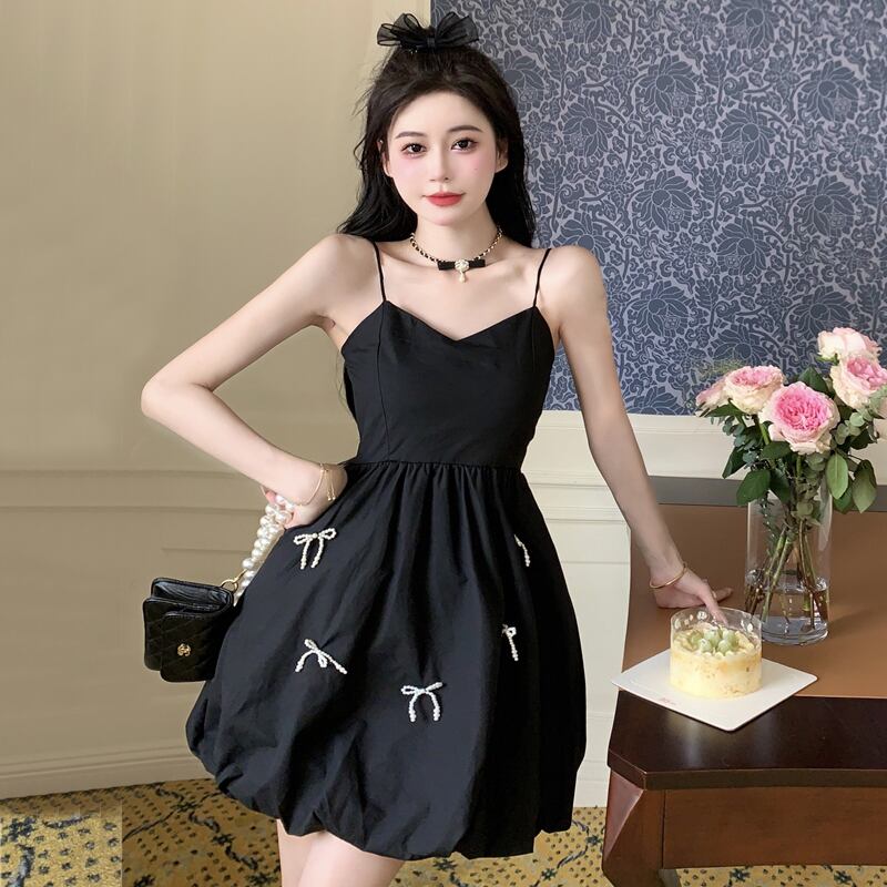 シックなスカートヘップバーンリトルブラックドレスレディースサマーフレンチニッチデザインショートふくらんでいるサスペンダードレス micat18848973900