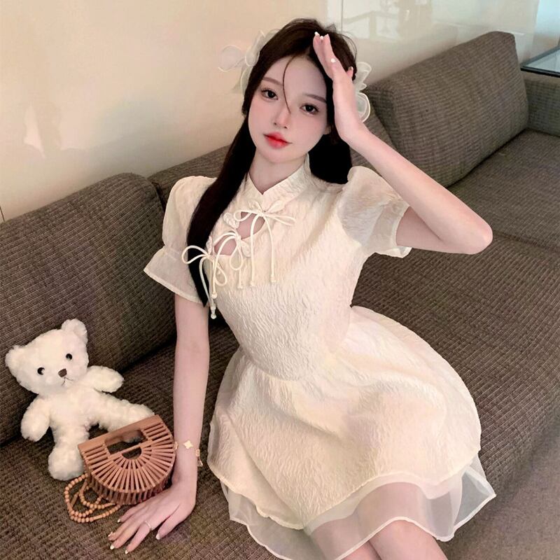 フランスのスーパーフェアリーホワイトチャイナドレスヤング音律ハイエンドレトロ修正バージョンデザインセンスニッチドレス micat79814517331