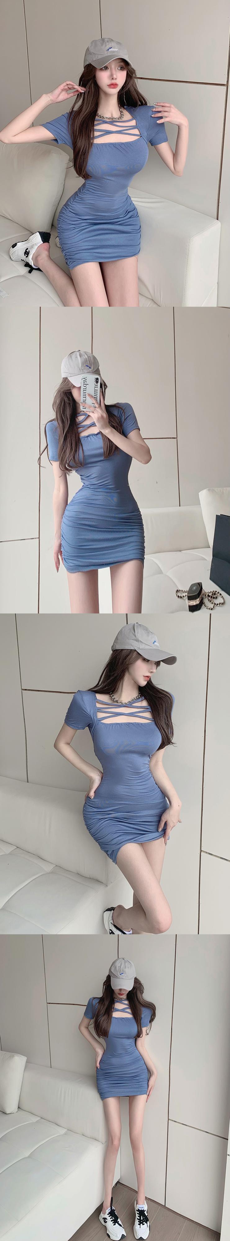 夏の婦人服2022新しい純粋な欲望セクシーなスクエアネックデザインの小さな半袖ヒップドレス micat56691391578
