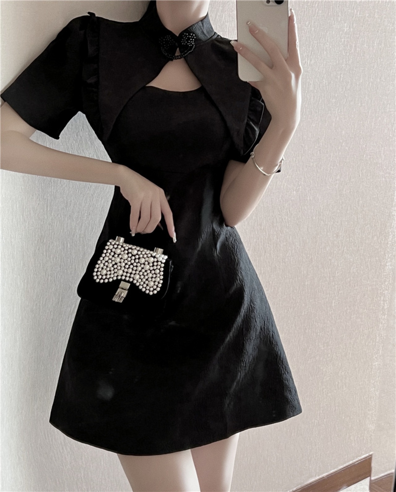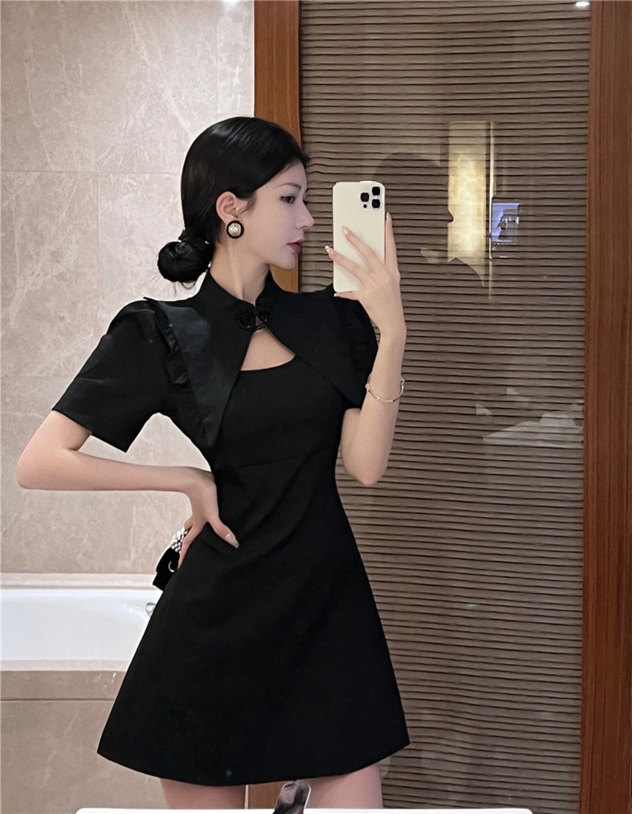 毎日の襟のセクシーなショートヒップドレスのフランスの黒のチャイナドレスの若い気質のハイエンド修正バージョン micat1345736765