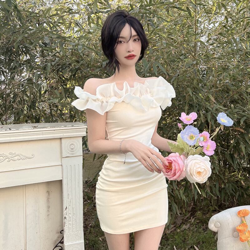 ライブ放送服ポジェニック女性アンカー服フランスのスーパー妖精蓮の葉セクシーな一言ショルダーバッグヒップオフショルダードレス micat93350190887