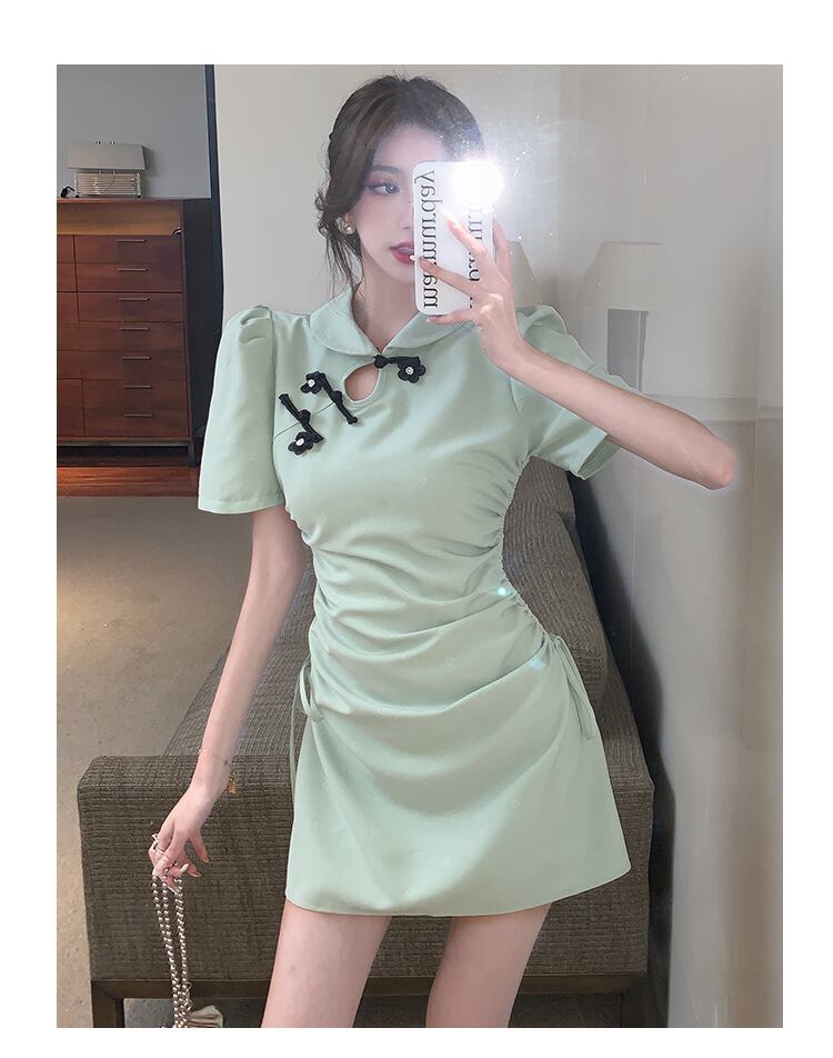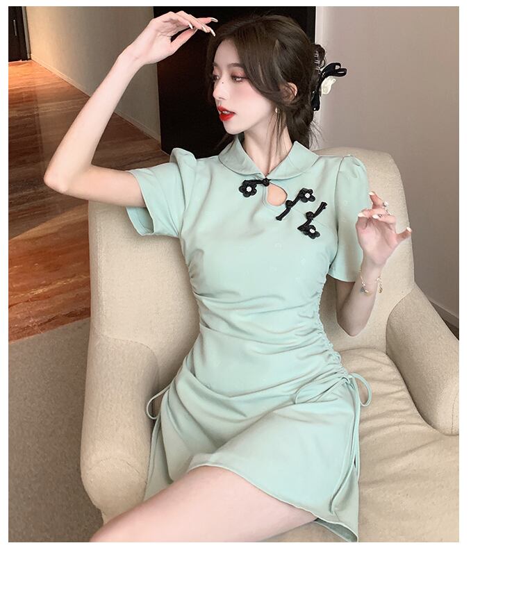 チャイナドレス若い毎日の甘い愛のプリント改良版プリーツウエスト痩身ヒップドレス micat75167602902